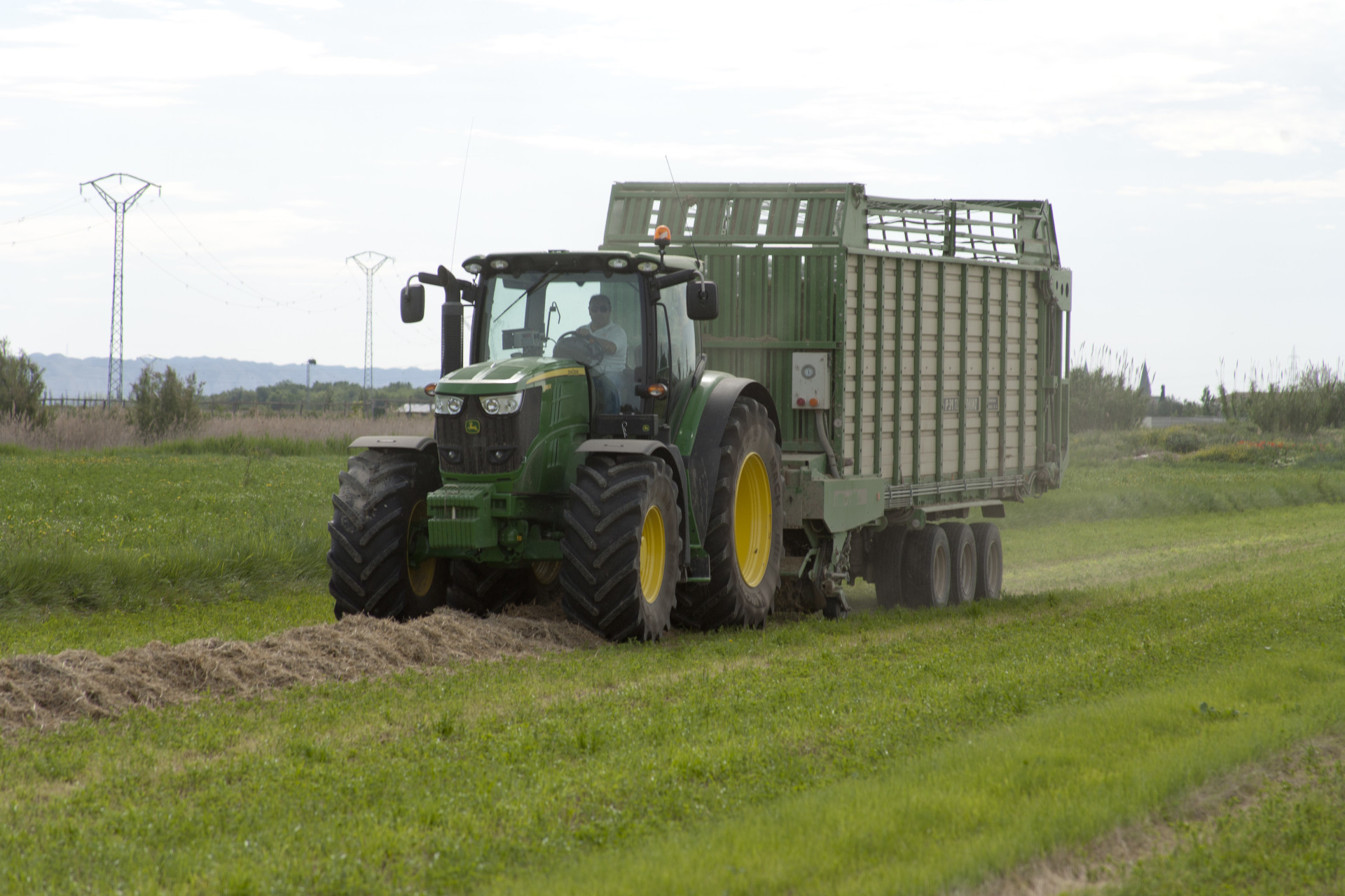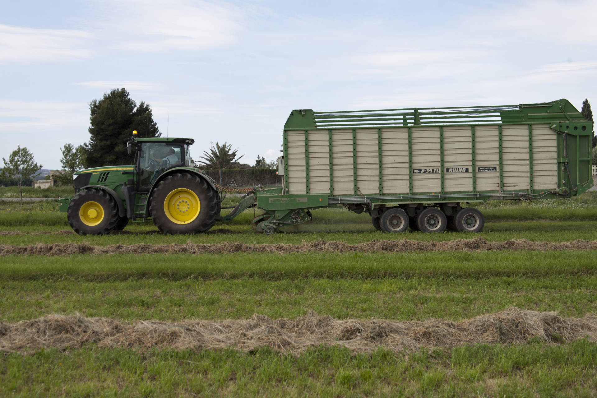 El sistema de recogida también es variable dependiendo del destino, en el caso de ir para rama se utilizan empacadoras que la prensan en formato rectangular o redondo; si el destino es la industria deshidratadora la recogida se hace con carro picador en el 65% de la superficie y con picadora y remolque en el 35% restante.